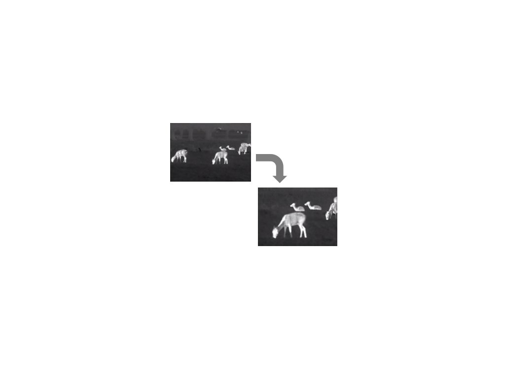 Vestavěný tepelný detektor s vysokou citlivostí 35mk poskytuje jasný obraz i v drsných podmínkách prostředí jako je tma, mlha, kouř, prach, déšť, sníh, lesní porost atd.