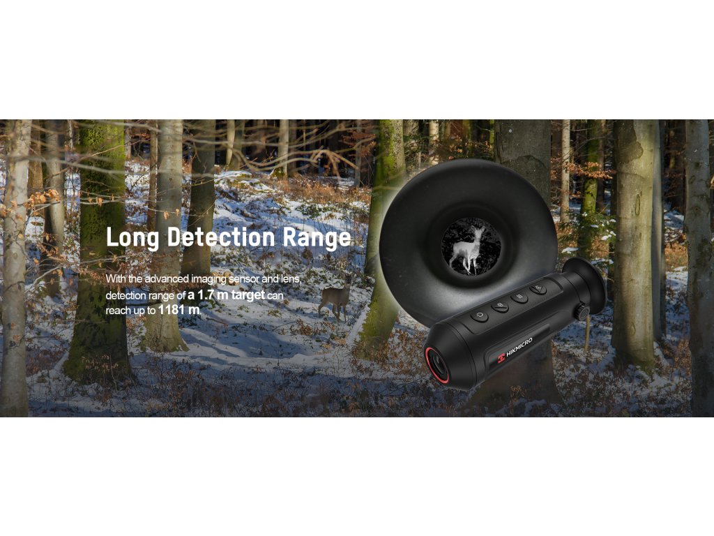Vestavěný tepelný detektor s vysokou citlivostí 35mk poskytuje jasný obraz i v drsných podmínkách prostředí jako je tma, mlha, kouř, prach, déšť, sníh, lesní porost atd.