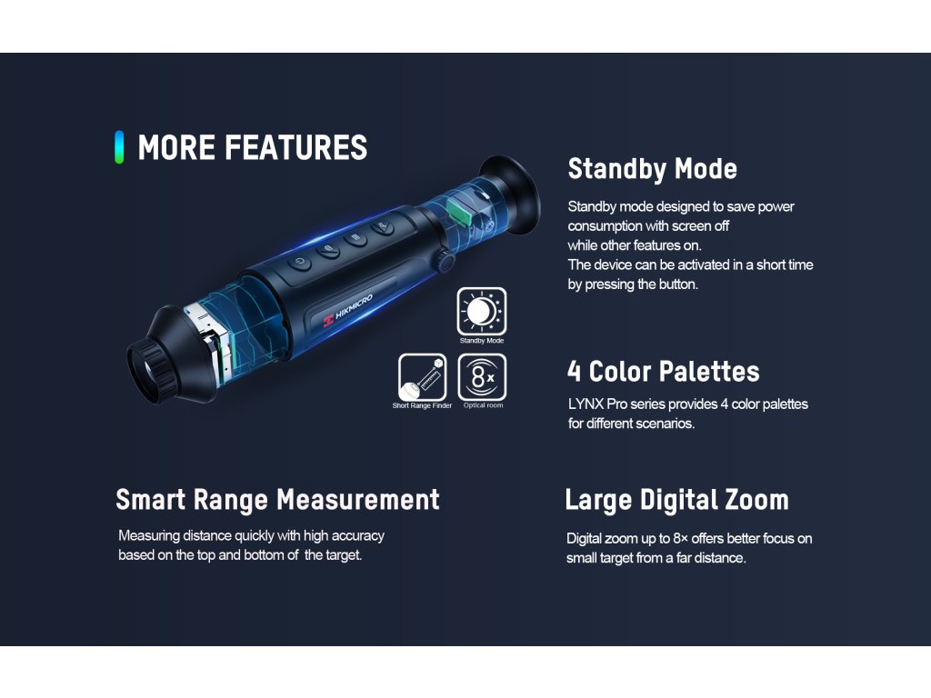 Termovizní kamera HIKMICRO LYNX PRO LH19 (HM-TS03-19XG/W-LH19) je vybavena kvalitním jádrem o rozlišení 384×288 px 12µm (12 mikronová technologie) a novým LCOS displejem 1280x960 px a 19 mm čočkou a 8x digitálním zoomem.
